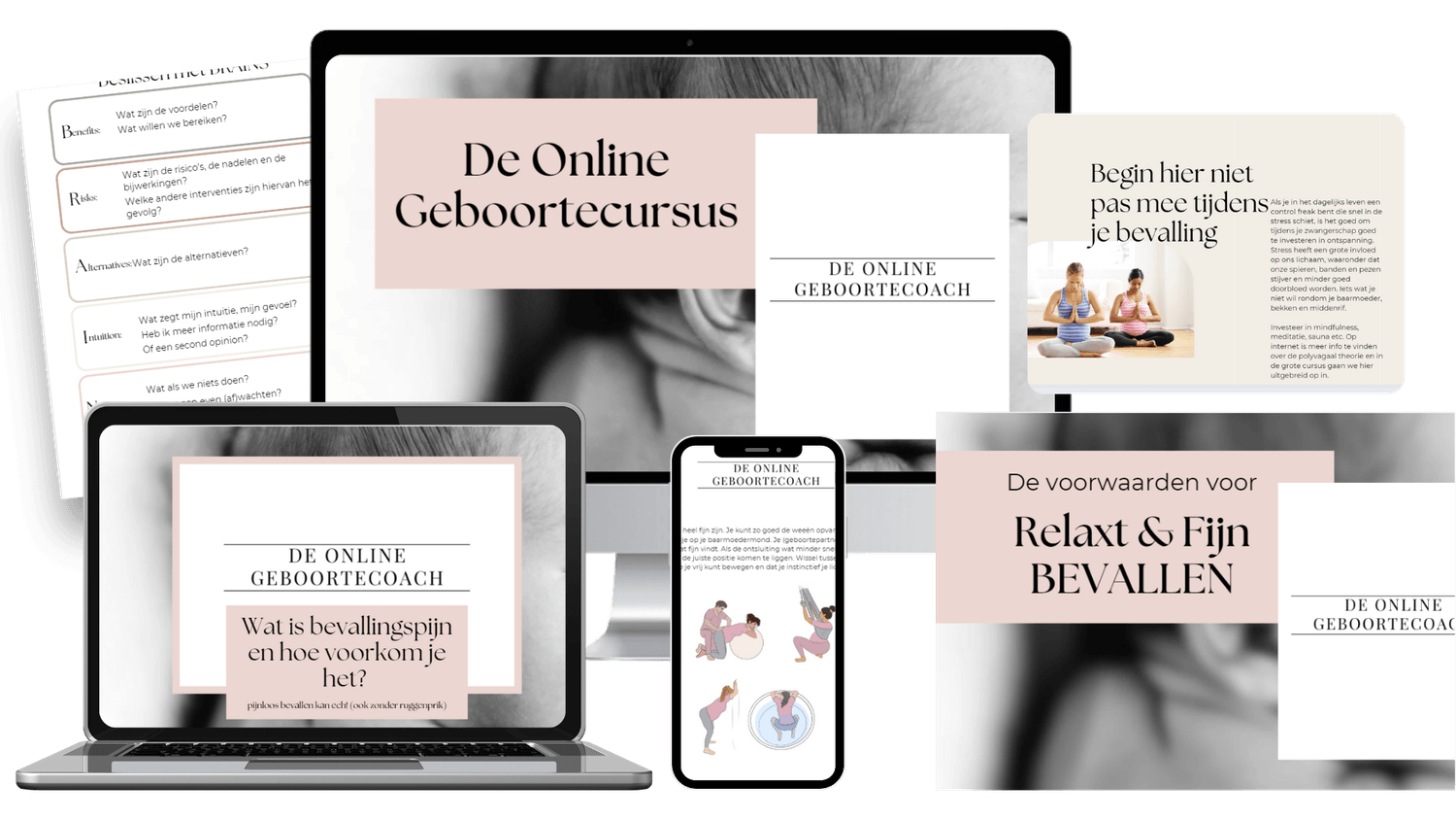 De cursussen van De Online Geboortecoach zijn het logische gevolg van mijn zoektocht naar een normale en fijne manier van bevallen. Al mijn kennis en ervaring, alle tips & trics zitten verwerkt in de cursussen.